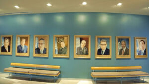Photos of former Secretaries-Generals in the UN’s public lobby.
