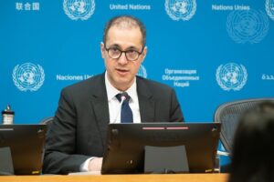 Kaveh Madani, Director of the UN University’s Institute for Water, Environment and Health and lead author of the report entitled “Global Water Bankruptcy: Living Beyond Our Hydrological Means in the Post-Crisis Era” briefs reporters at UN Headquarters. Credit: UN Photo/Evan Schneider
